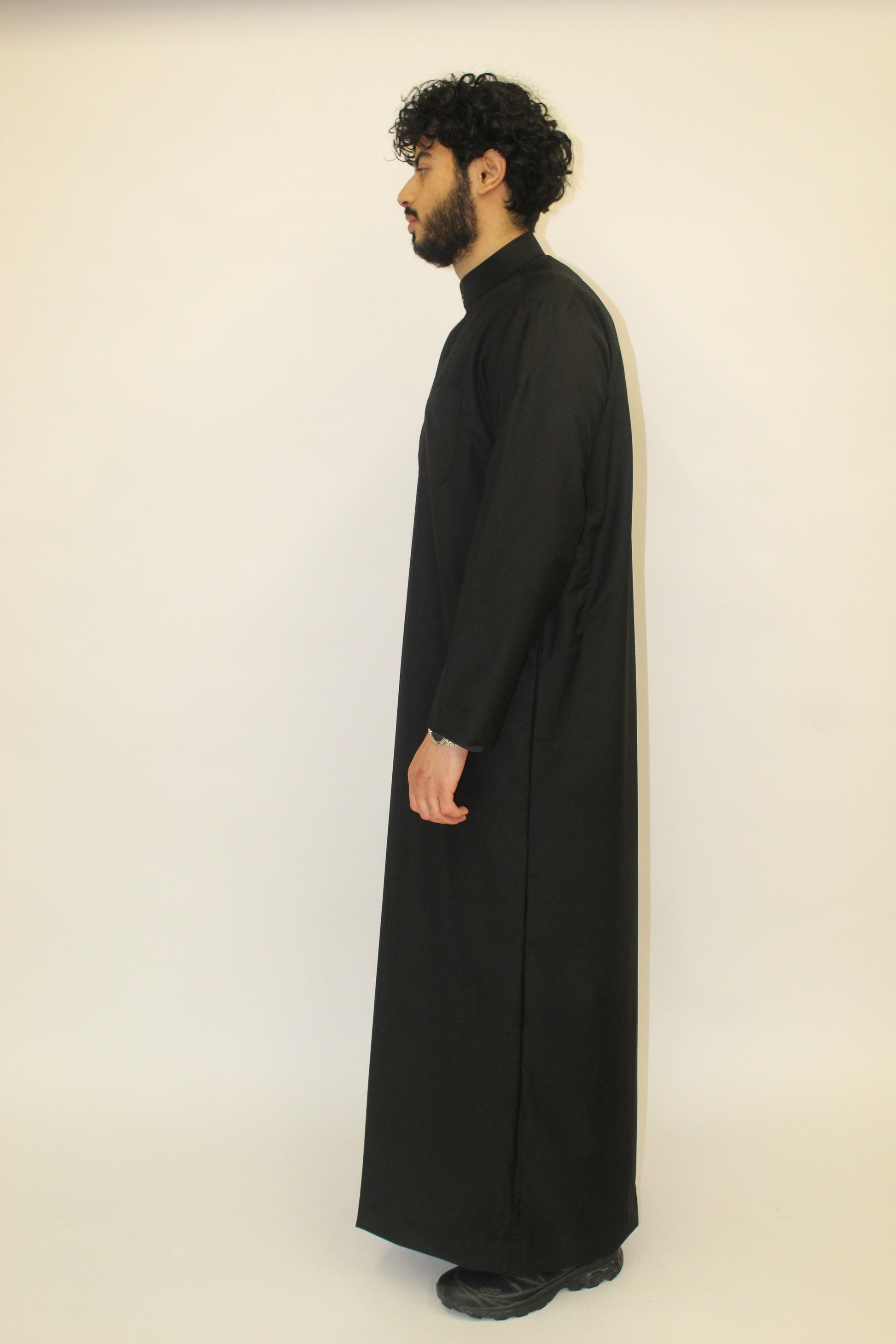 Made from our premium heavyweight wool blend, the Black Knight features a classic regular collar and open sleeves for a relaxed yet polished feel. A versatile black essential designed for effortless elegance.
