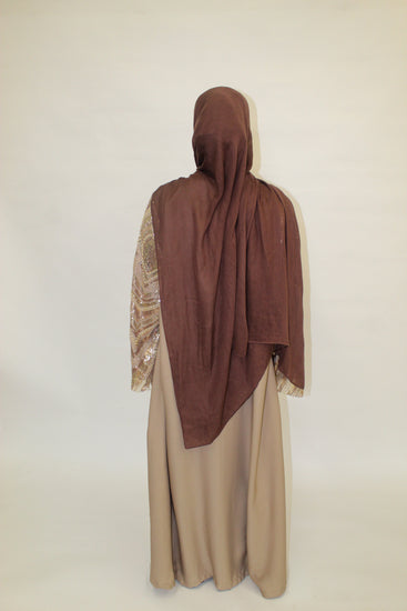 This timeless piece is both luxurious and refined, coming complete with a matching hijab for a beautifully coordinated look.